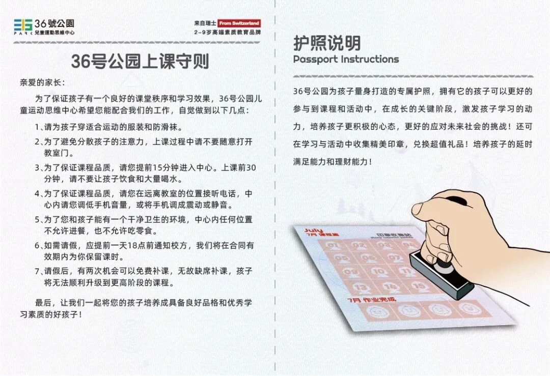 孩子的成长与环境有很大关系,有效的引导与激励更能够促进孩子的健康成长,36号公园成长护照可以给孩子提供一个,全年有序的课程组合,更好的推进儿童提升个人能力,通过36号公园护照设计的勋章奖励机制,更好的帮助孩子在玩中学,在做中学,更重要的是一本护照使用一整年,每年都领取儿童护照更好的给孩子童年留下欢乐的痕迹。