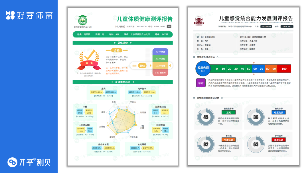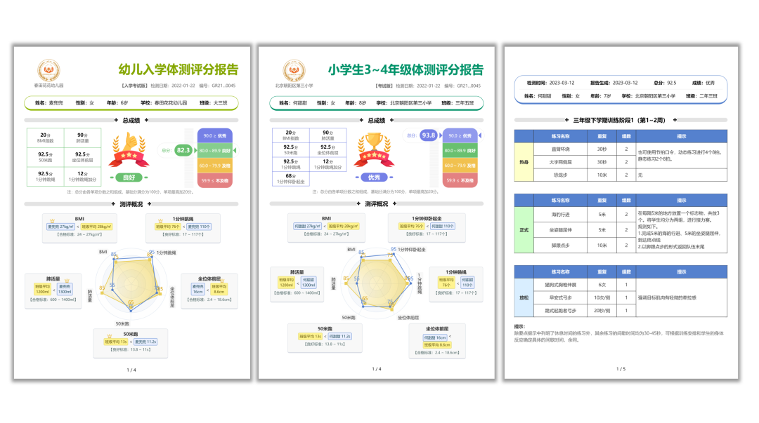 通过对3-18岁儿童青少年的身体机能、身体形态、身体素质等方面进行专业科学 有计划地测试与数据分析,为其运动水平和体育课达标能力提供准确、全面、客观的体质测评报告。