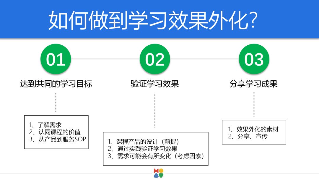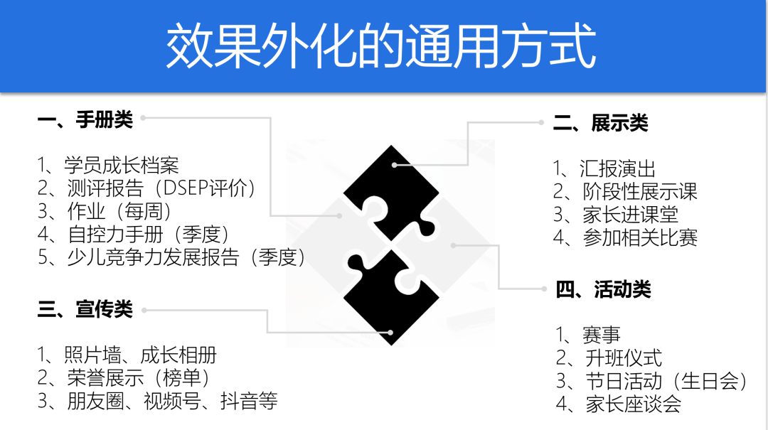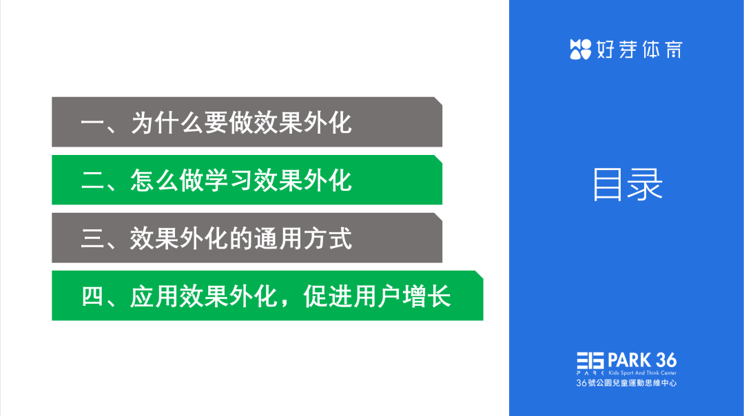 田丰老师通过36号公园在日常教学的真实、成功案例,从四个方面解析并总结了一套通用学习效果外化的方案。
