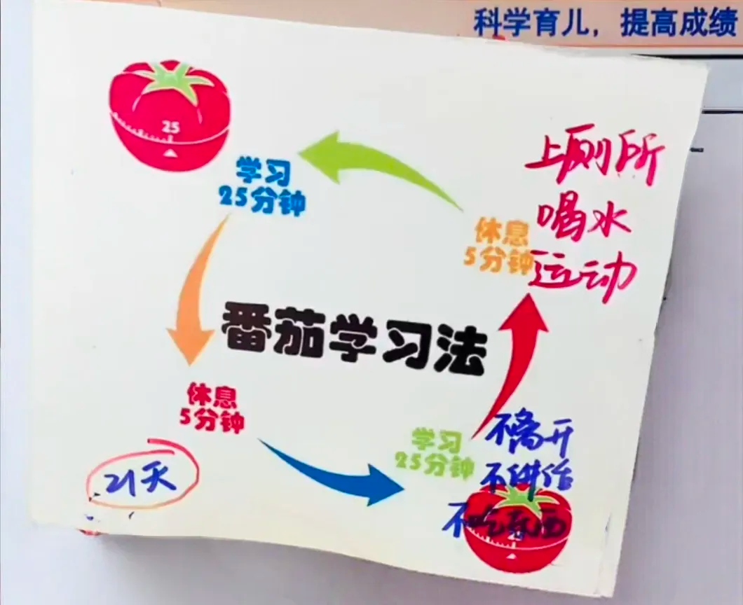 通过学习和休息交替进行,能提高孩子的时间效率。有位家长用了番茄学习法坚持 21 天,孩子写作业的效率明显提高了,专注力也增强了。